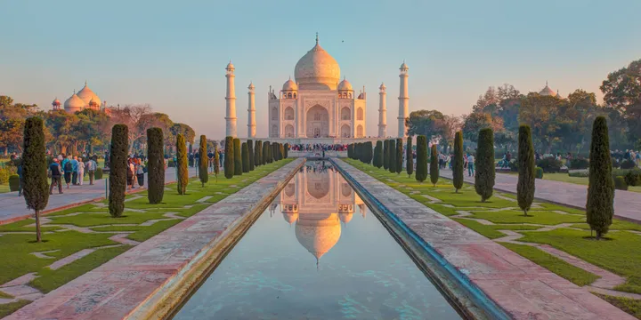 Explore India’s iconic Taj Mahal, a UNESCO World Heritage site and one of the New Seven Wonders of the World. This evening, meet your guide and set off for the Taj Mahal to see its impressive architecture as the sun sets, watching as its marble exterior reflects the hues of golden hour and the fading daylight. Constructed in the 17th century as a mausoleum for Shah Jahan’s empress consort, Mumtaz Mahal, the Taj Mahal is widely regarded as one of the finest examples of Mughal architecture. As you explore, note the Indian, Persian and Islamic influences in its designs and discover the lush gardens and central pool. The Taj Mahal’s finer details are also not to be missed; see the artful inlays of semi-precious stones, crafted into both geometric patterns and Arabic calligraphy, and observe the intricate latticework of its interior.
