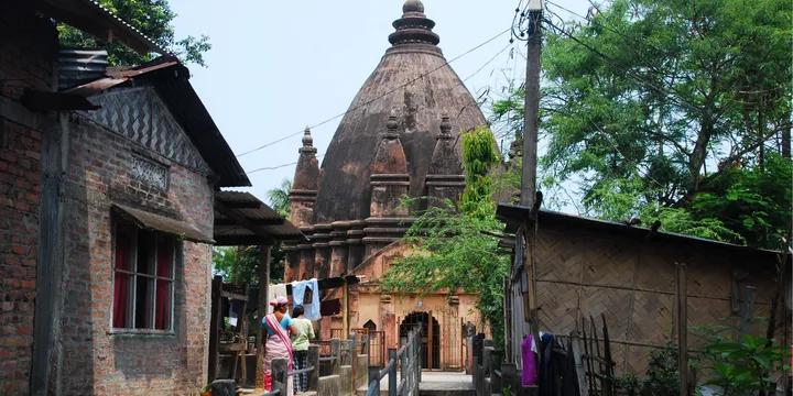 Discover the city of Guwahati, visiting the Kamakhya Temple, a local market and the Brahmaputra Heritage Centre. Drive to Nilachal Hill, a cultural landmark that offers views over the Brahmaputra River, Guwahati and the distant landscape. The hill hosts the Kamakhya Temple, which dates back to the 9th century and is dedicated to the eponymous goddess. Explore the grounds with your guide to see panels that depict Hindu gods and goddesses. Watch as people light candles for worship and see goats roaming around the temple. Next, walk to the local market to see colorful fruits, silks and local food displayed at the stalls. Continue to the Brahmaputra River Heritage Centre, where the legacy of the river can be explored through exhibits that include historical artifacts, traditional textiles and presentations that demonstrate its impact on trade, local life and folklore.