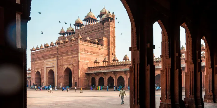 Explore the abandoned city of Fatehpur Sikri, a former capital of the Mughal Empire, to see its architectural gems. As you transfer from Agra to Jaipur, pause at Fatehpur Sikri, a UNESCO World Heritage Site known as the City of Victory, built by Emperor Akbar in order to commemorate the birth of his son. Enter through the imposing Buland Darwaza gateway, one of the tallest in the Mughal Empire, to discover this abandoned capital. The Tomb of Salim Chishti, with its marble exterior and fine latticework, resides in the entry courtyard and is a testament to Mughal craftsmanship. Walk past the Halls of Private and Public Audience to learn about daily life in the city and how the Emperor would rule. Discover the Ornamental Pool, set amid a sandstone courtyard, where visiting musicians would stand atop its platform and perform for the emperor. After your visit, continue to Jaipur.
