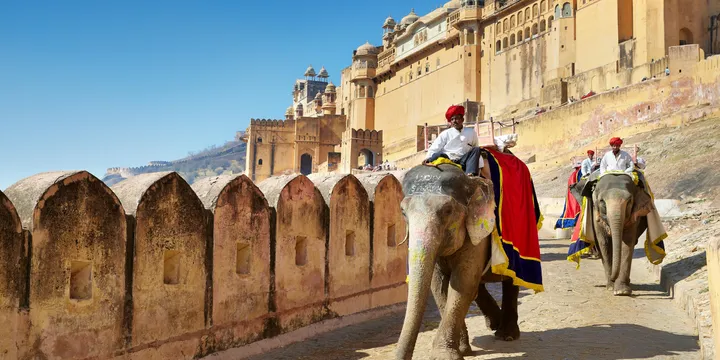 Discover some of Jaipur’s most impressive architectural feats as you explore the city and its surroundings. Meet your guide, board your jeep and set off into the countryside to the Amber Fort, a UNESCO World Heritage Site. Built in the Rajput architectural style of the 17th century, this hilltop fortress served as a royal residence until 1728 and features both intricately carved screen windows and spacious courtyards. After exploring the Amber Fort, return to Jaipur to visit its successor, the City Palace, where a blend of Rajput and Mughal architecture is on display in structures like the Hall of Winds and the imposing Chandra Mahal. Here, walk the grounds and enjoy lunch before stopping at the Jantar Mantar Observatory, awarded its UNESCO status for its 19 astronomical instruments, including the world’s largest sundial, all built by Jaipur’s founder, Raja Sawai Jai Singh.