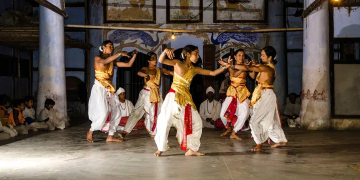 Explore Majuli, a UNESCO World Heritage Site and a stronghold of neo-Vaishnavism, a key religion in Assam. From your ship, set out to discover the myriad cultures of one of the world’s largest river islands. Boasting a rich history, Majuli is an island shaped by its heritage and its ecology. As you drive through the villages, glimpse the stilted homes that help residents deal with seasonal flooding. Pause along the way to learn about local crafts, such as silk weaving and the art of making Mukha Shilpa, or masks that depict key figures in Hindu scripture and are used in religious plays. After, visit two satras, or monasteries, where the main religion of the island, neo-Vaishnavism, is taught and practiced. During your visits, learn about monkhood and religious education. See old relics, murals and worship rooms and watch a Gayan-Bayan performance, a religious dance.