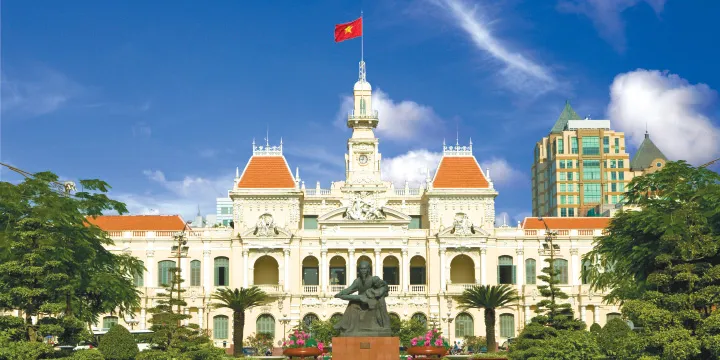 Ho Chi Minh City is a heady mix of French and Vietnamese cultures, where baguettes and croissants are sold alongside pho (Vietnamese noodle soup) and motor scooters buzz past colonial-era architecture. The city’s wide boulevards are reminiscent of Paris, lined with jewels such as the Opera House, fashioned after the Petit Palais, and the grand Central Post Office, designed by Gustave Eiffel. Aromatic food stalls and colorful shops purvey local specialties and all manner of Vietnamese wares, from conical hats to ao dai, the traditional silk tunic worn by women.