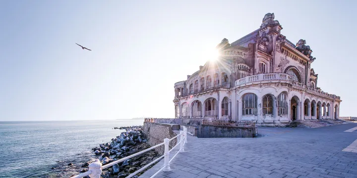 On the shores of the Black Sea lies Constanța, a city steeped in history. A pleasant stroll along its boardwalk offers views over the Old Town, along which sits the iconic art nouveau building of the Constanța Casino. The towering minaret of the Grand Mosque presides over the city and a climb to the top rewards visitors with spectacular vistas over the ocean. Nearby, the Cathedral of Saints Peter and Paul is inspired by Romanian-style architecture of the 17th and 18th centuries, featuring a Greco-Roman style of pressed brick and a 114-foot-high tower.