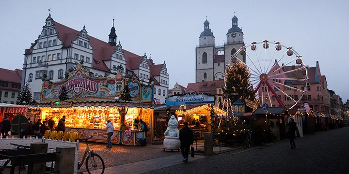 In a city so central to the Protestant Reformation, it is well worth taking a closer look at Wittenberg’s churches. The most famous is the Lutheran All Saints’ Church, built around 1340. It later became the official church of the University of Wittenberg and provided a pulpit for Martin Luther and his colleague Philipp Melanchthon to preach Protestantism. Luther and Melanchthon are both entombed within the church. The Town Church of St. Mary is renowned as the first to have celebrated mass in German rather than in Latin. Here, also, bread and wine were offered to worshippers for the first time, earning it a place as the “Mother Church of the Reformation.”