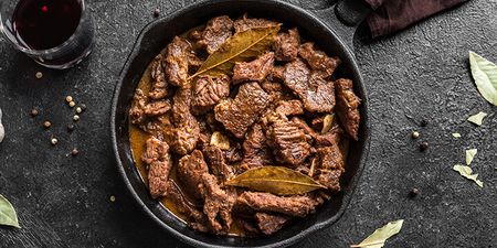 This Austrian beef stew with paprika and caraway seeds is a standard in Salzburg pubs and Viennese coffeehouses. Served over noodles or potatoes, it’s hearty, warm and filling. While the ratio of onion and garlic to meat may surprise you, these cook down to form a savory sauce, and we are certain this dish will become one of your favorites.